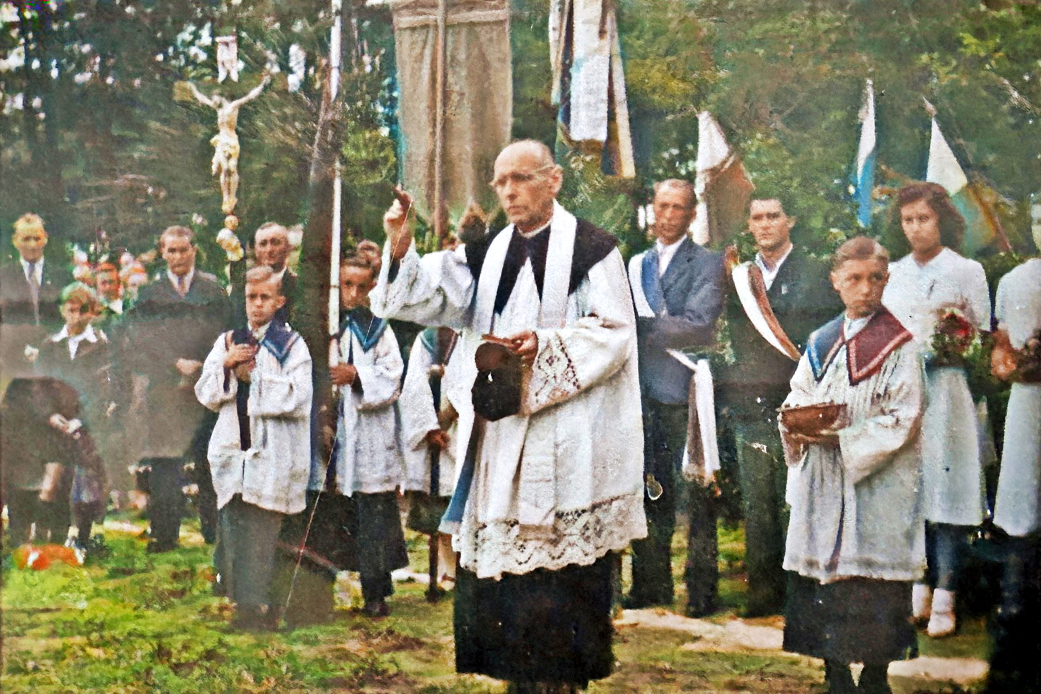 Bereits um neun Uhr morgens begannen an diesem Tag die Feierlichkeiten rund um die Weihe des neu angelegten Dörfleinser Sportplatzes. Hallstadts Stadtpfarrer Rössert hatte zum Gottesdienst für den Verein in die St. Ursula Kapelle eingeladen. Im Anschluss folgte eine Prozession hinunter zum Sportgelände des SV Dörfleins, an der zahlreiche Menschen teilnahmen. Neben einer Vielzahl der Einwohnerschaft waren auch die damals noch eigenständige Gemeindeverwaltung von Dörfleins, eine Fahnenabordnung anderer Vereine, die Vorstandschaft des Patenvereins SV Hallstadt und die Blaskapelle „Kleeblatt Stettfeld“ gekommen, um die Sportplatzweihe feierlich mitzubegehen. Am SVD-Gelände angekommen, ergriff Valentin Morgenroth als Mitglied des Festausschusses zunächst das Wort, um alle herzlich Willkommen zu heißen. Im Anschluss hielt auch Pfarrer Rössert eine kurze Ansprache, in der er die Errichtung eines Sportplatzes sehr begrüßte. Er wandte sich dabei auch an die anwesenden Fußballer, um sie vor Unkameradschaftlichkeit auf dem Spielfeld zu mahnen. Es folgte mit der kirchlichen Weihe des Sportplatzes der Höhepunkt dieses Vormittags.