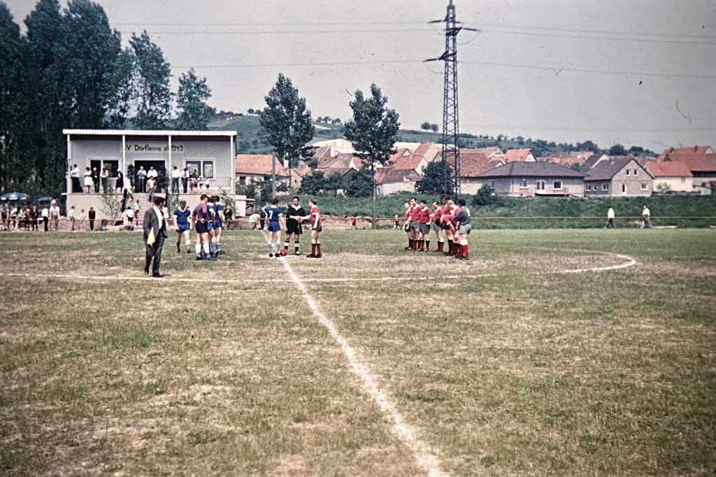 Gespannt lauschten die anwesenden Vereinsmitglieder den Ausführungen von Vorstand Xaver Rothammer, der in der Generalversammlung 1964 über das Vorhaben eines Sportheimbaus für den SV Dörfleins referierte. Wegen fehlender Dusch- und Umkleideräume am Sportgelände war der Wunsch nach eigenen Räumlichkeiten schon länger laut geworden, zumal sich die Mitgliederzahl von Jahr zu Jahr vergrößerte und sich die Fußballer mitunter im angrenzenden Löschweiher wuschen. So fertigte ein beauftragtes Architekturbüro schon bald einen Entwurf für ein SVD-Sportlerheim unmittelbar neben dem Fußballfeld an – mit allem, was so dazu gehört. So sollten im Untergeschoss zwei Umkleideräume mit Duschen und ein Geräteraum installiert werden. Das Obergeschoss sah eine Schiedsrichterkabine sowie einen Aufenthaltsraum mit sanitären Anlagen vor, dem allem vorstehen sollte eine Terrasse. Zufrieden stimmten die Vereinsverantwortlichen dem rund 30.000 Mark teurem Bauvorhaben zu.
