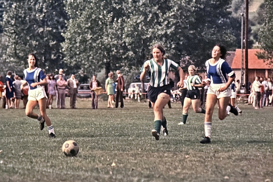 Eine stattliche Zuschauerkulisse kam in Starnberg zusammen, als der SV Dörfleins mit seiner neu aufgestellten Damenmannschaft zu einem Freundschaftsspiel gegen die heimische Freie Turnerschaft von 1909 antrat. Das Fußballspiel war in der örtlichen Presse groß angekündigt worden. Zuvor schon hatten die Dörfleinser Fußballfrauen, die größtenteils die Ehefrauen der damaligen Alten Herren gewesen waren, über mehrere Wochen trainiert und eifrig Regelkunde betrieben. Die Mühen sollten sich auszahlen, denn an jenem Tag im Sommer 1970 ging der SV Dörfleins am Ende tatsächlich als Sieger vom Feld. Noch einige weitere Male fand sich die SVD-Damenmannschaft in den darauffolgenden Wochen und Monaten auf dem Fußballplatz zusammen, um Freundschaftsspiele abzuhalten. Gespielt wurde dabei in der Regel auf Kleinfeld, auch die Anzahl an Akteurinnen war geringer als bei den Männern – unter anderem, weil es einfach nicht so viele Fußballerinnen gab.