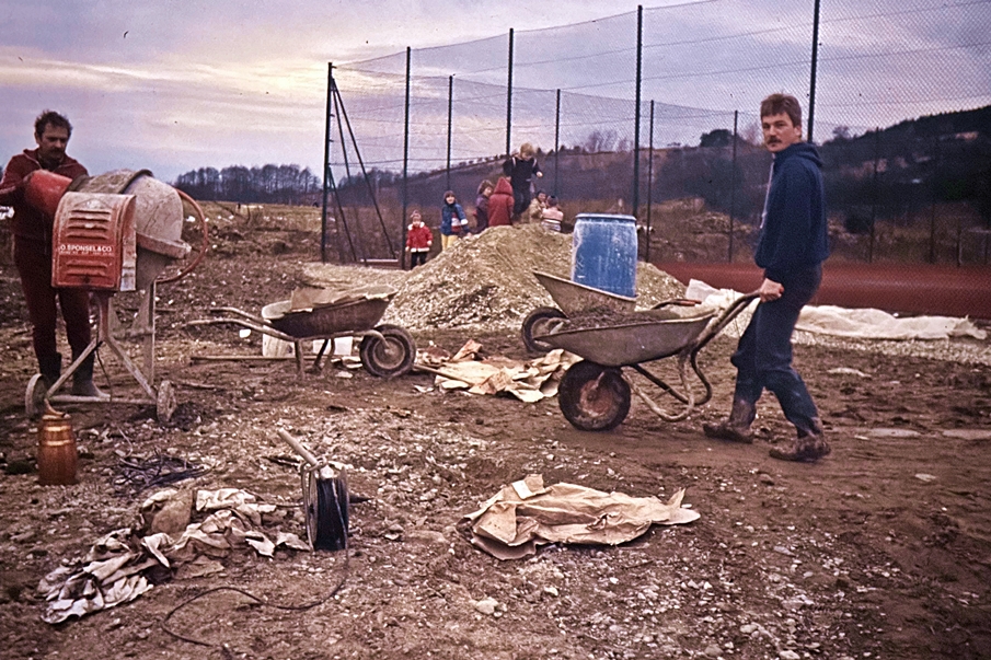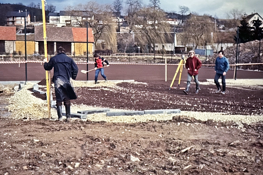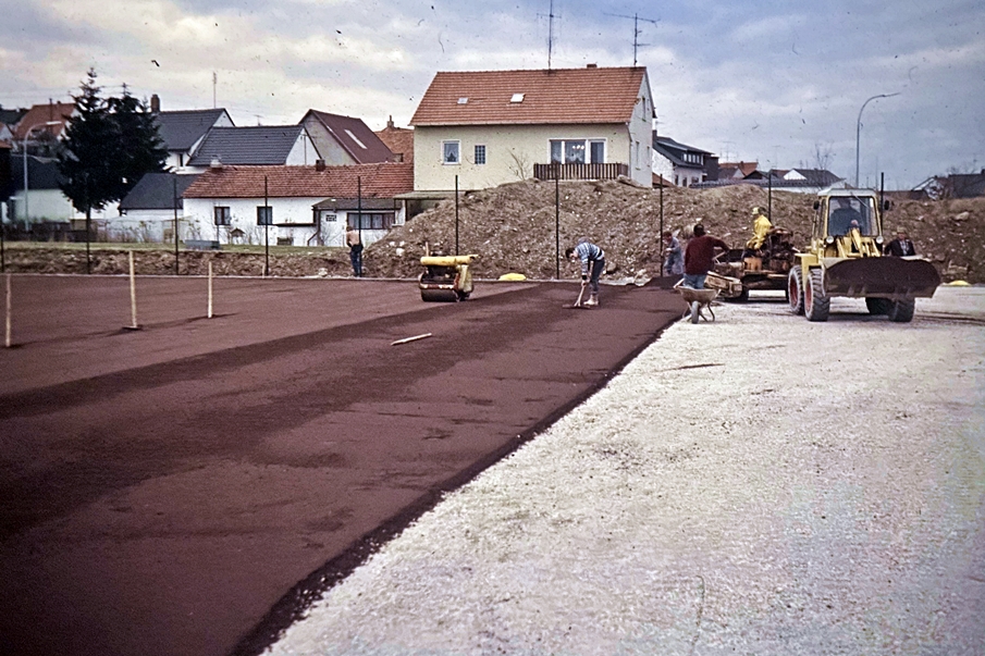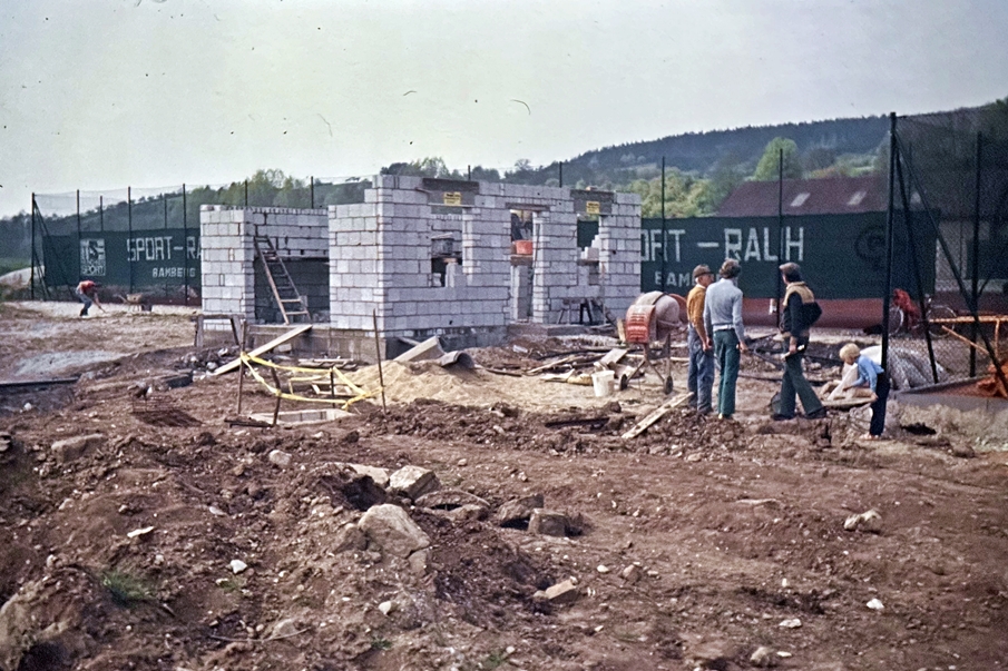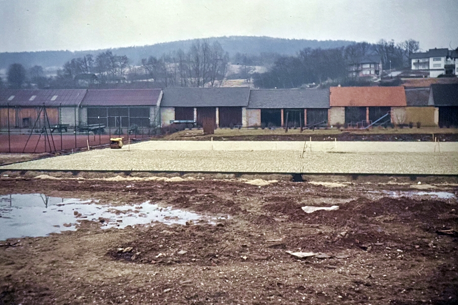 Nachdem die Finanzierung der Tennisplätze geklärt werden konnte, bemühte sich der SV Dörfleins um ein passendes Firmenangebot. Letztlich erhielt die Firma John GmbH den Zuschlag für die bevorstehende Baumaßnahme. Der erste Arbeitsschritt bestand nun darin, an Ort und Stelle Boden auszuheben, um eine Verrohrung durchführen zu können, mit Hilfe derer die späteren Sandplätze bewässert werden konnten. Anschließend wurden die Fläche aufgeschüttet sowie der rote Oberflächenbelag fein säuberlich aufgetragen und verdichtet. Schnell nahm die neue Sportfläche dadurch Gestalt an.